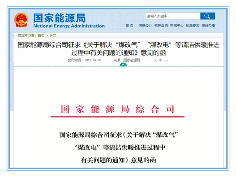 国家能源局:征求《关于解决“煤改气”“煤改电”等清洁供暖推进过程中有关问题的通知》意见的函