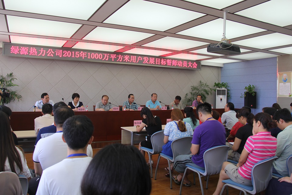 2015年的发展任务比绿源公司过去十年发展的总面积还要多,为完成这一艰巨任务,在时间紧、任务重,难度大、困难多的情况下,2015年8月15日上午9点,焦作市绿源热力有限公司召开用户发展工作动员誓师大会。