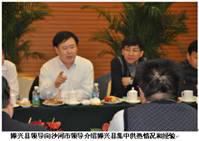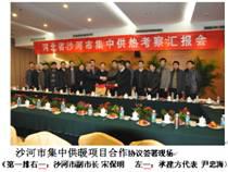 2012年01月13日下午,在山东通源热力集团、北京寰慧新能源集团公司邀请下,河北省沙河市人大副主任朱宪国、副市长宋保明率领的沙河市城市供暖项目建设及运营相关部门领导组成的考察团一行,对山东博兴县城市供暖项目进行考察。沙河市城市集中供暖项目合作洽谈会议在山东省博兴县博兴宾馆举行,此次活动特邀了博兴县常委、县政法委书记刘方太同志和建设局副局长赵笑波同志介绍博兴县集中供暖情况和与山东通源集团、北京寰慧能源集团的合作情况。经过项目实地考察及热烈的洽商,沙河市领导与山东通源、北京寰慧新能源公司达成合作共识,双方当场签署了合作框架协议。 会议首先由山东通源热力公司和北京寰慧新能源公司向沙河市考察团汇报了自身近三十年的城市供暖技术、运营管理和资金运作优势,同时剖析了沙河市城市集中供暖的现状,并着眼于沙河市城市发展现状和未来规划远景,汇报了针对沙河市集中供暖改造和建设的解决方案。该方案核心是充分利用沙河市现有的热电厂发电机组冷淋水余热回收技术给城市集中供暖,这是一项节能减排、优化环境、有利民生和减少政府财政支出的多方共赢方案。博兴县领导介绍了山东通源热力、北京寰慧新能源公司承建运营的博兴县集中供暖的情况,充分肯定了承建方的技术、建设、运营及资金投放能力,总结双方合作是一项利国、利民、利企业的多赢模式。随后沙河市考察团成员提出了运营、技术及合作等各项关切问题,都一一得到了承建方的圆满解答。考察团一行随后参观了博兴县集中供热的热力厂及下属的几个供热站,观摩了各供热站现场监控和操作,考察团各位领导一致认为承建方是一家技术先进、运营成熟的可靠合作伙伴。